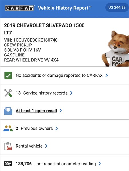 2019 Chevrolet Silverado 1500 LTZ 4-Door Truck